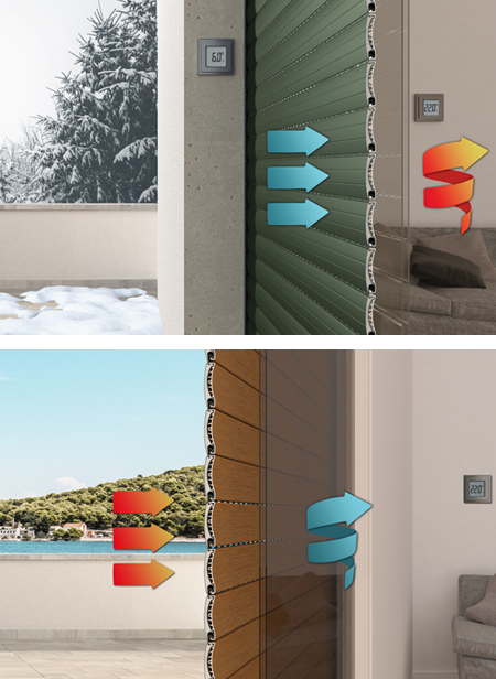 Il particolare sistema di aggancio tra le due facce della stecca, da un lato alluminio e dallโaltro PVC, interrompe la conducibilitร termica del metallo, impedendo. a seconda della stagione, la fuoriuscita di aria calda e lโentrata della fredda. Risparmio energetico piรน alto si traduce in bollette piรน basse.