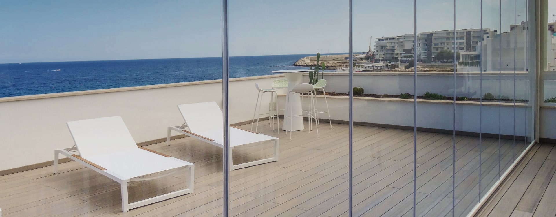 Le vetrate panoramiche FanGlassยฎ presentano un perfetto sistema di chiusura che le rende resistenti alle piogge e allโumiditร delle zone costiere, abbattendo notevolmente gli spifferi, grazie alla presenza di terminali profilo e di guarnizioni che si innestano tra di loro.