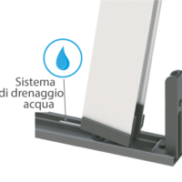 La guida inferiore รจ alta solo 7 mm ed รจ provvista di asole per il drenaggio dellโacqua, che ne evitano il fastidioso deposito.