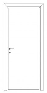 Con Ferramenta di serie cromo satinata, Stipite di serie Aptica in Listellare e Coprifili di serie in multistrato piatti da 85 mm.